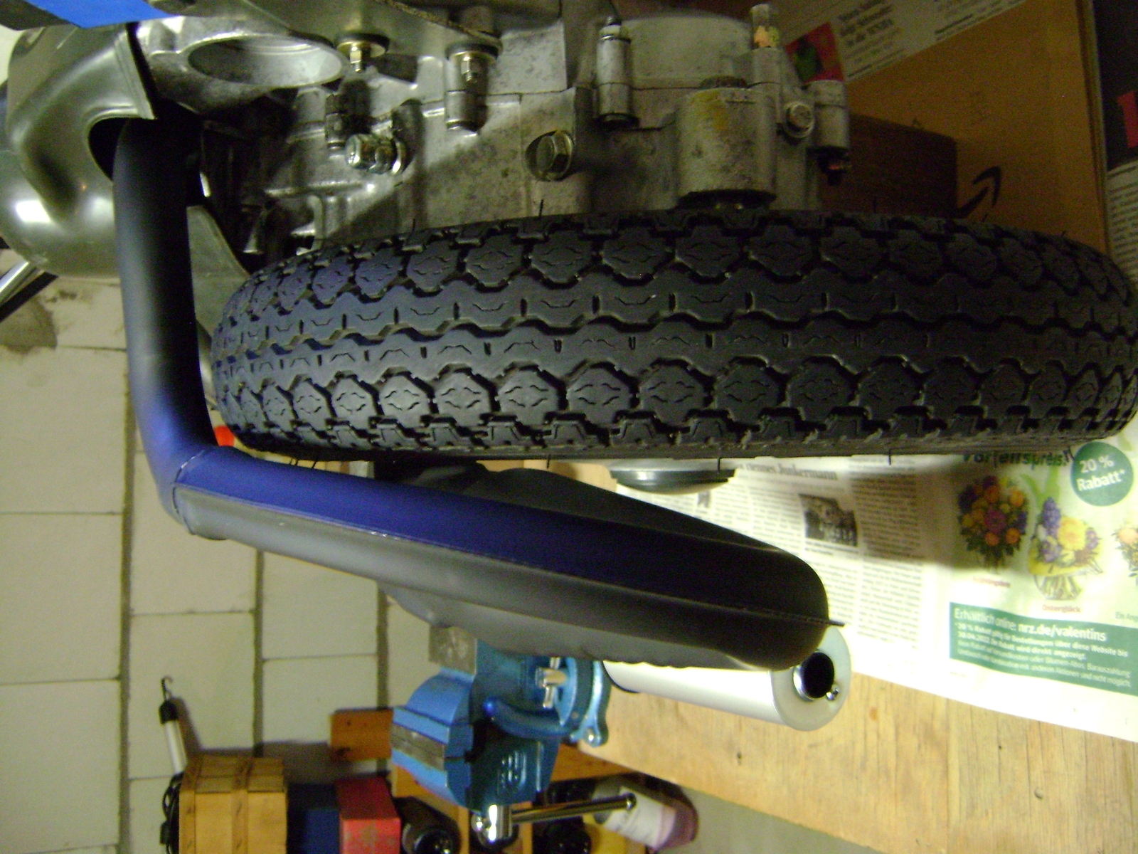Das Rad kann ich ja mit montiertem Auspuff nicht mehr ausbauen.