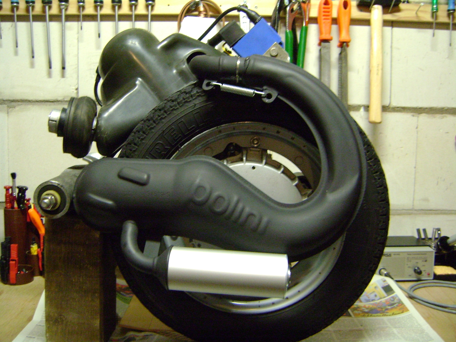 Bekomme ich den Motor mit Rad in die Karossiere eingesetzt oder muss der Auspuff und Rad wieder runter?