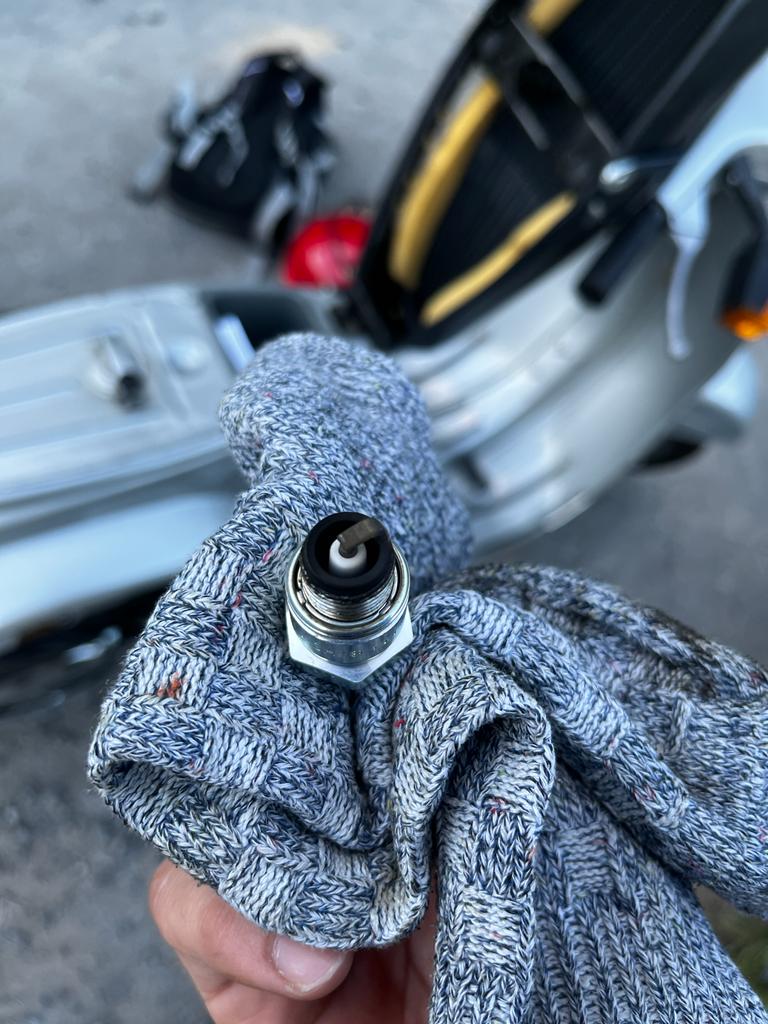 Kerze ist auch nicht versifft (bin gerade ca 10 kilometer gefahren) -> also der Motor sifft nicht mehr ![]()