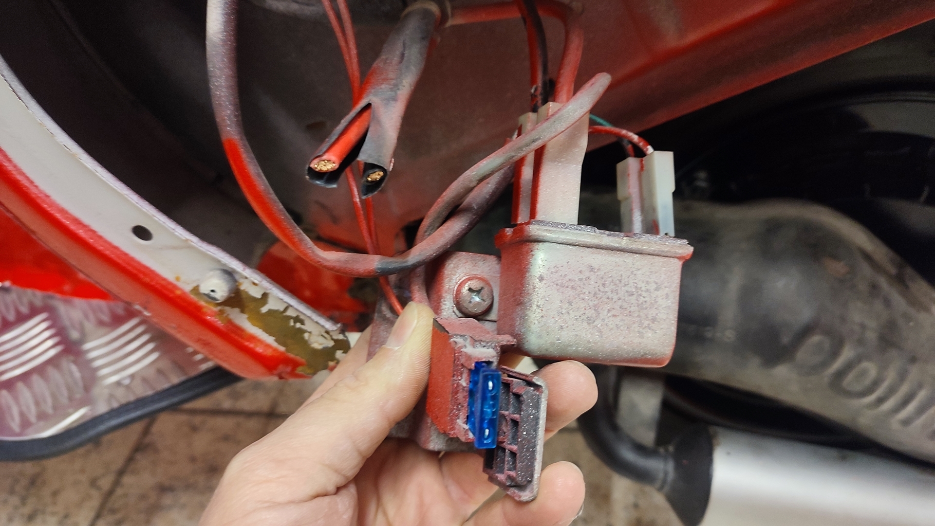 Zusätzlich liegen da noch ein abgezwicktes Kabel (rot und schwarz).