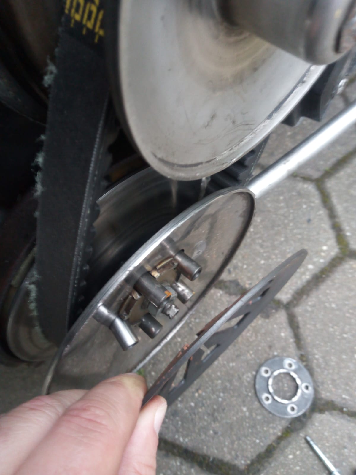 Als erstes 17er Nuss auf die Welle und mit Drehungen und leichtem Druck das ganze Geraffel wieder in die Ausgangsposition gedrückt. Dann die Platte begutachtet und abgeschraubt (Tipp -> vielleicht verkehrt herum montiert). Siehe zwei Bilder. Ich habe sie dann wieder mit der Wölbung nach AUßEN!!! montiert, so wie es vorher auch war. Anderes herum hat sie keinen Druck, lässt sich überhaupt nicht wirklich montieren - also passt nur in eine Richtung - Der Übersicht halber Bilder gemacht (Siehe Bild "So montiert" und "So passt nicht").
