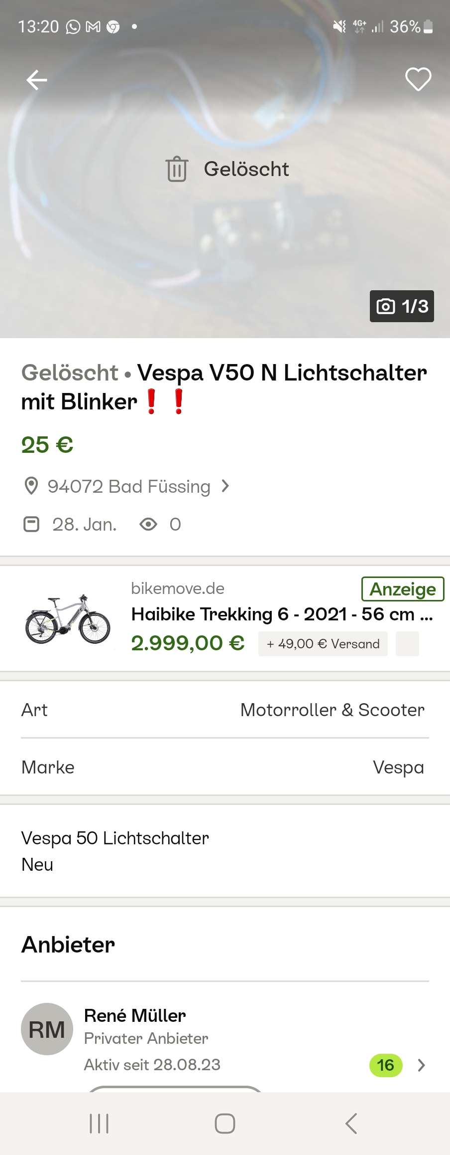 Der lichtschalter ist nicht von sip habe ich bei ebay Kleinanzeige gekauft