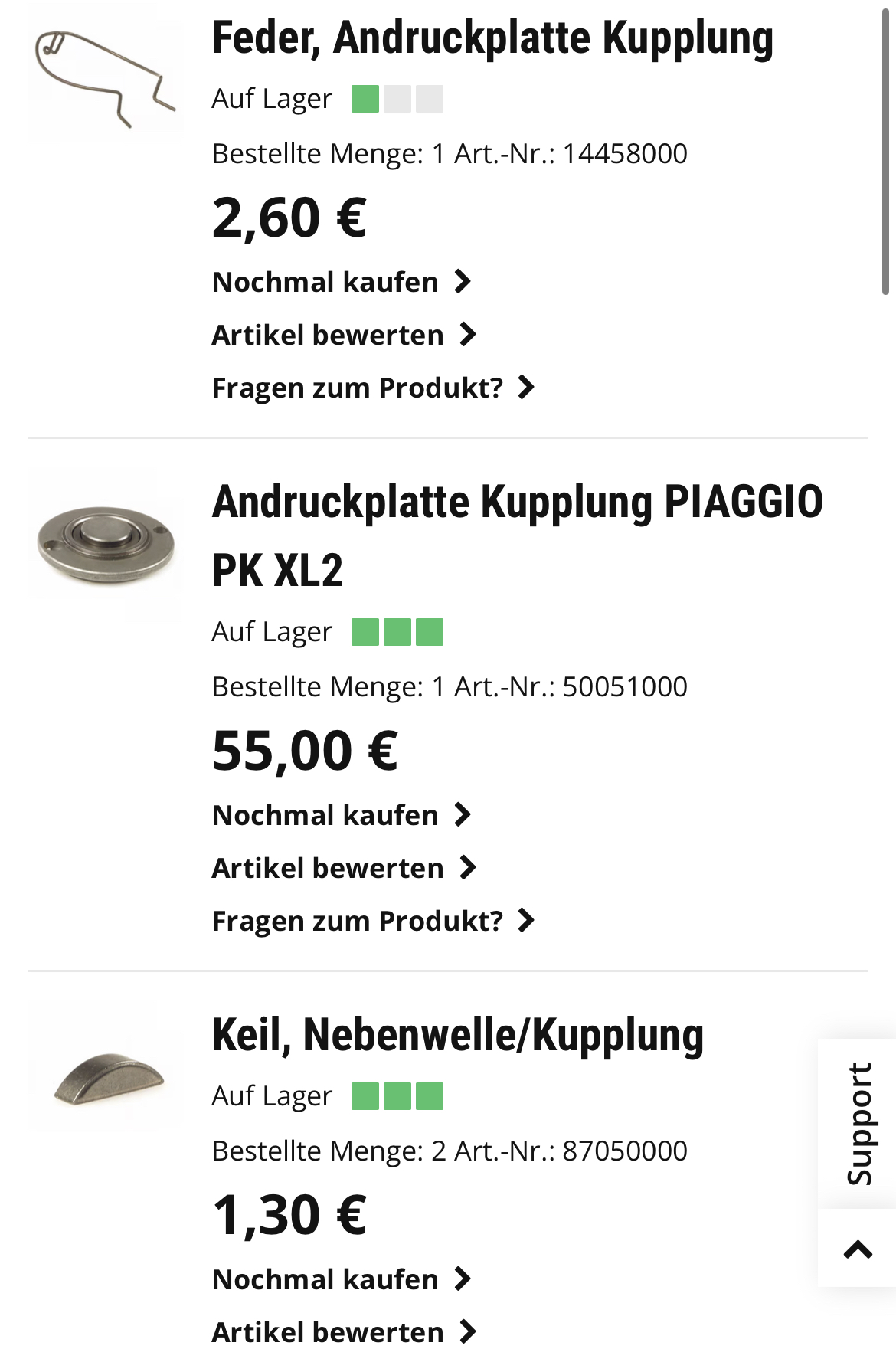 Das ist so nicht der Fall und steht hier auch nicht so. Im Verlauf kannst du sehen, dass ich die komplett Kupplung für die PK50XL2 damals gekauft habe.