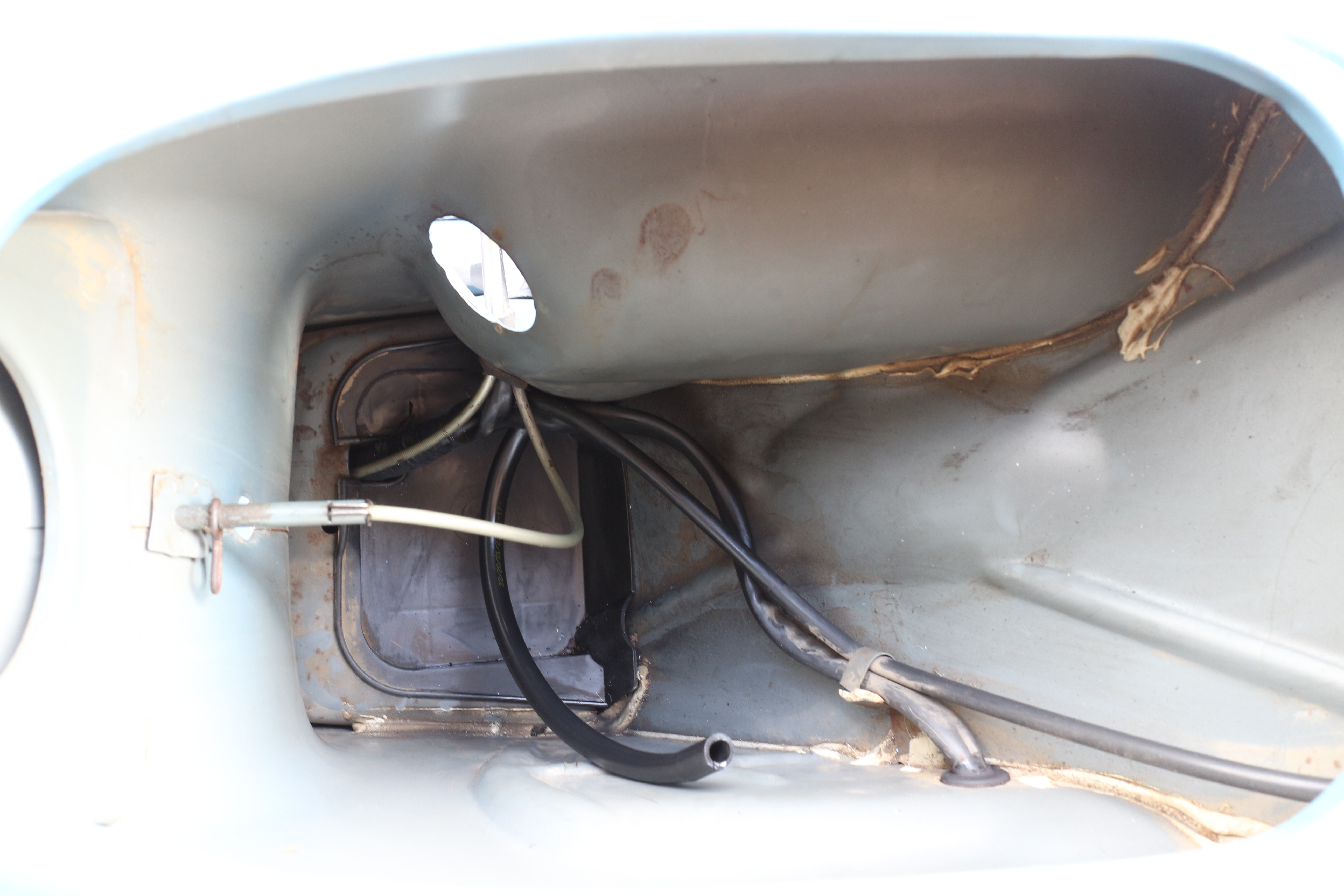 Schaut alles sehr gut aus im Bereich unter dem Tank. Den Tank selbst hatte mein Vorbesitzer schon versiegelt, in diesem Zusammenhang auch den Benzinschlauch mit getauscht.