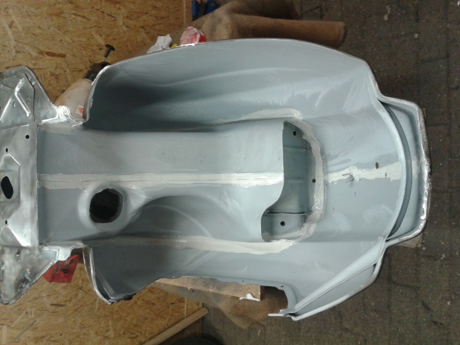 Auf dem letzten Bild sieht man auch die ausgebeulte und verzinnte Delle in der linken Seitenbacke.