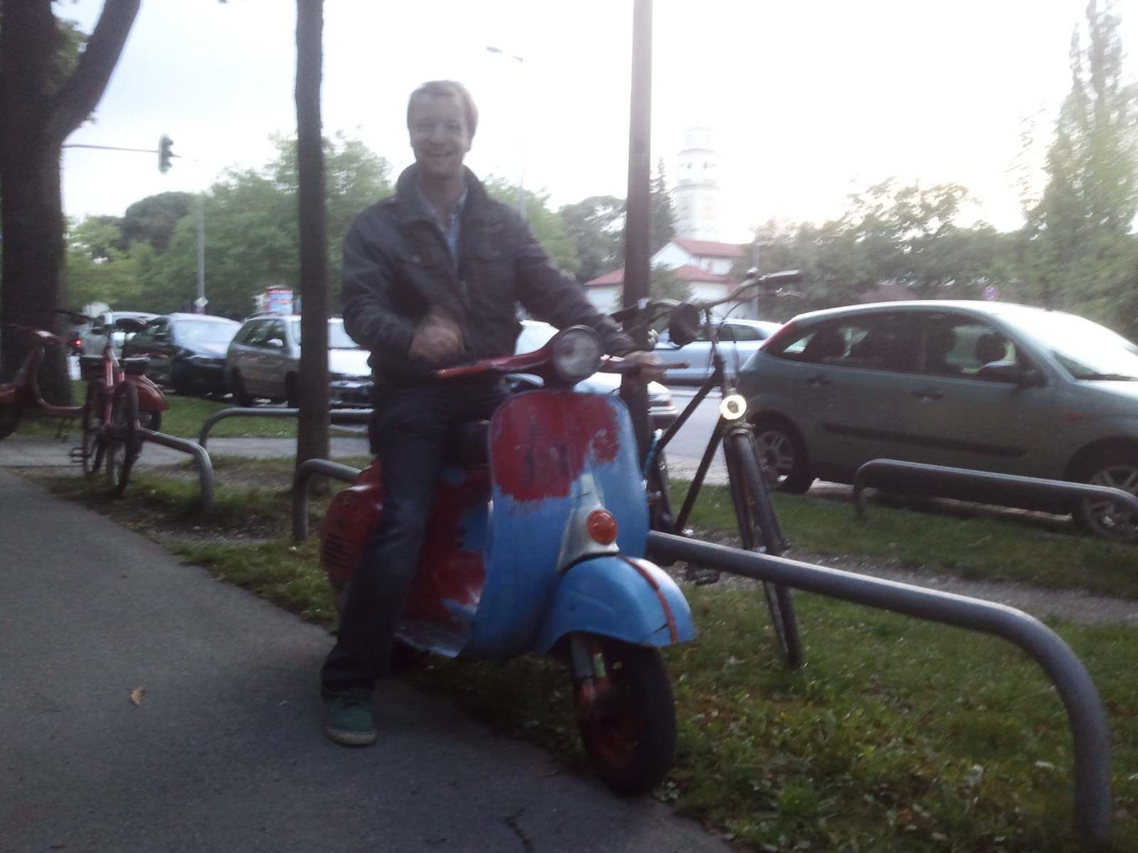 Aber das Bild geht in die Geschichte von München ein. Hansi mit Vespa, mit Licht, mit Benzin, und Rücklicht