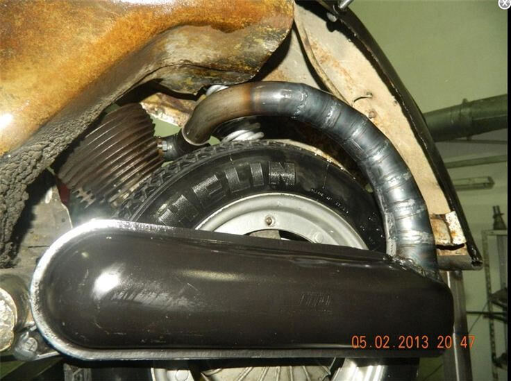 Bei dem PK Auspuff bin ich mir nicht sicher, ob der wirklich ohne Gefummel am Stehblech passt. Auf den Fotos ist das Stehblech herausgetrennt und stattdessen ein Blechstreifen eingeschweißt. Der sieht im Krümmerbereich stärker nach außen gewölbt aus als der Verlauf des originalen Stehblechs.