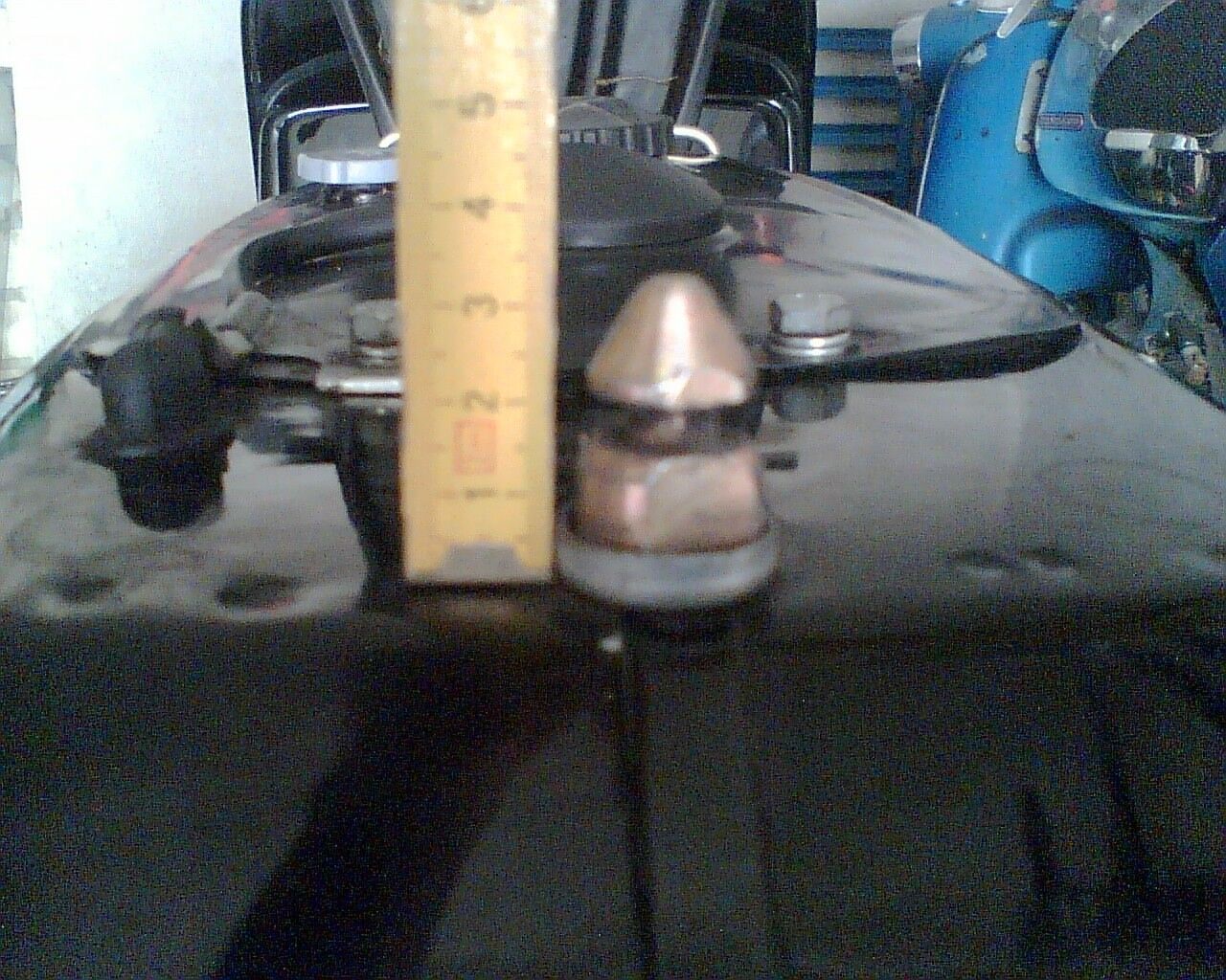 Musste heute die Tanks herausnehmen, da mein Benzinhahn undicht war und habe dabei die ziefe Lage des Schauglases gesehen.