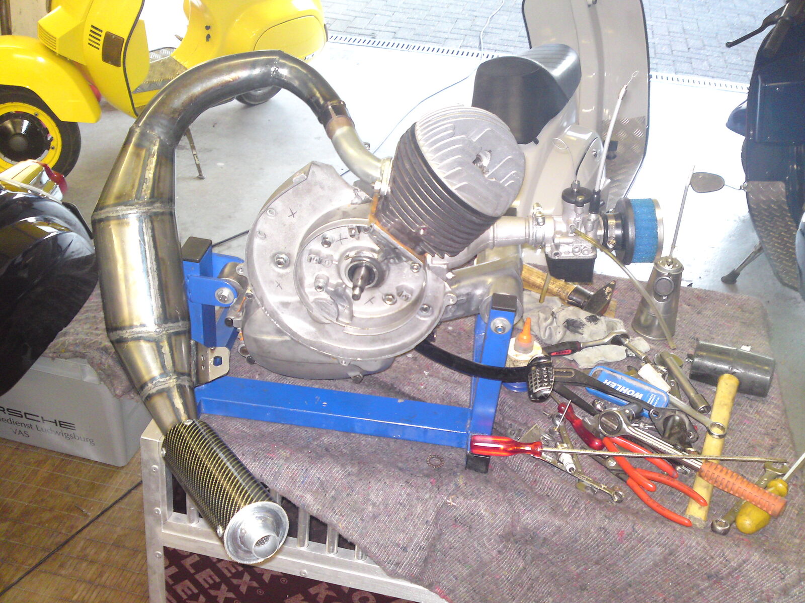 Die Überströhmer habe ich angepasst!Vorher habe ich immer pnp gefahren !jetzt hatte ich es auch versucht nur bei der defekten Drehschieberfläche habe ich mir nets gedacht!so lernt mann halt!also habe ich gestern mal wieder nen tag inna Garage verbracht und alles nochmal.Einlasskanal habe ich auch nen bissel grösser gemacht aber es hält sich noch in grenzen!