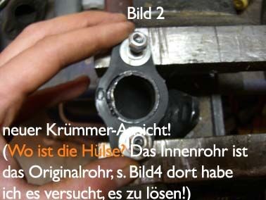 Bild4 beweist, dass sich gar keine Hülse im alten Krümmer befunden hat, deshalb nicht, weil durch das aufflexen ein zweites Rohr (Hülse) zum Vorschein hätte kommen müssen. Allerdings kann man nur ein Rohr entdecken.