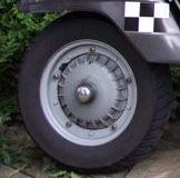 keine Hupe. Die Räder muss ich mal messen, sind aber genau wie jenes auf dem Foto.