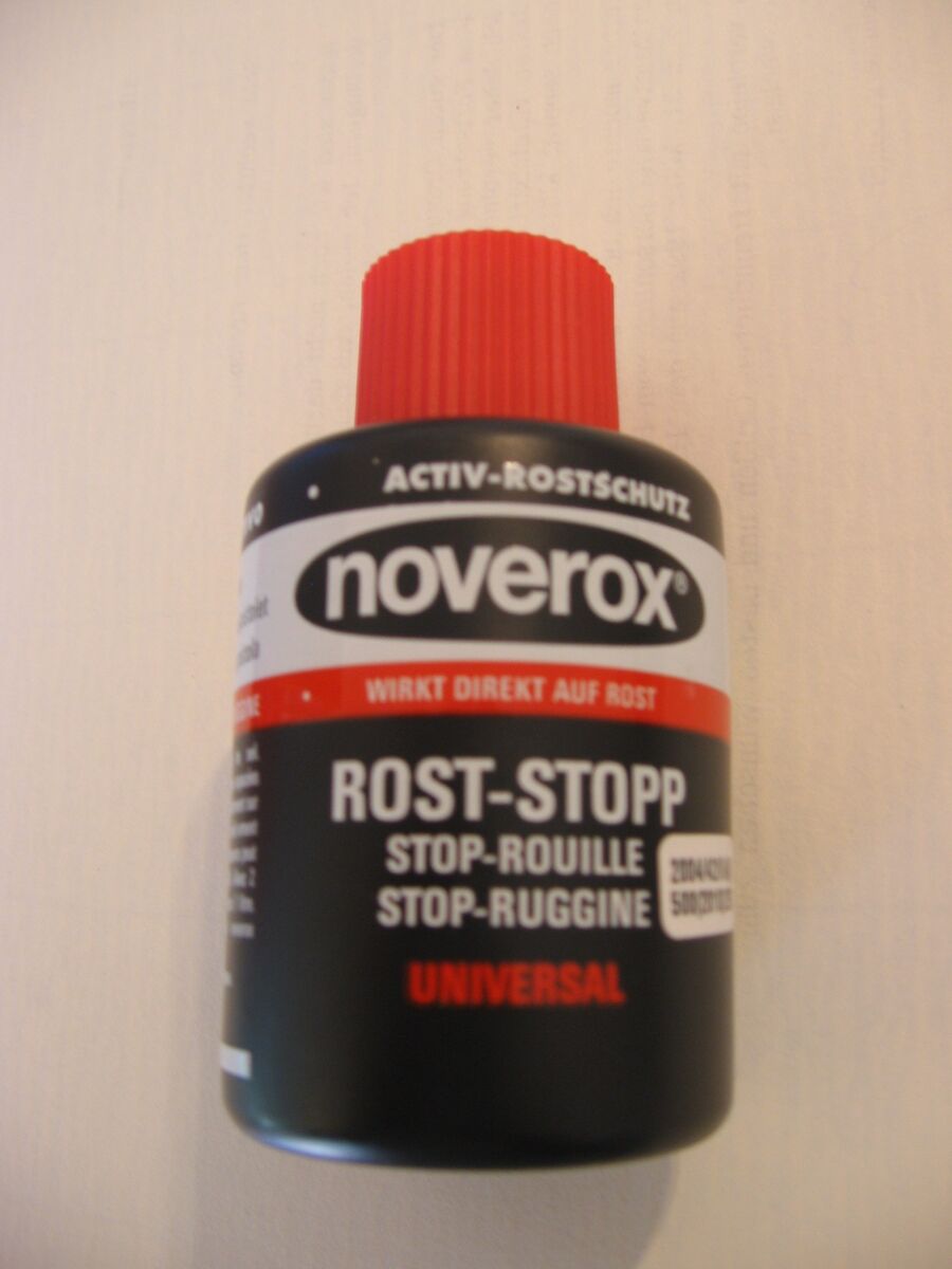Rost abschmirgeln, Rostschutz drauf, nach 2 Stunden nochmals, dann lackieren mit Pinsel, nochmal fein Schmirgeln, polieren
