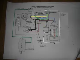 du musst vom spannungsregler die geregelte spannung zur fußbremse(grün) und in den lichtschalter(gelb) legen und von dort aus alle verbraucher versorgen.