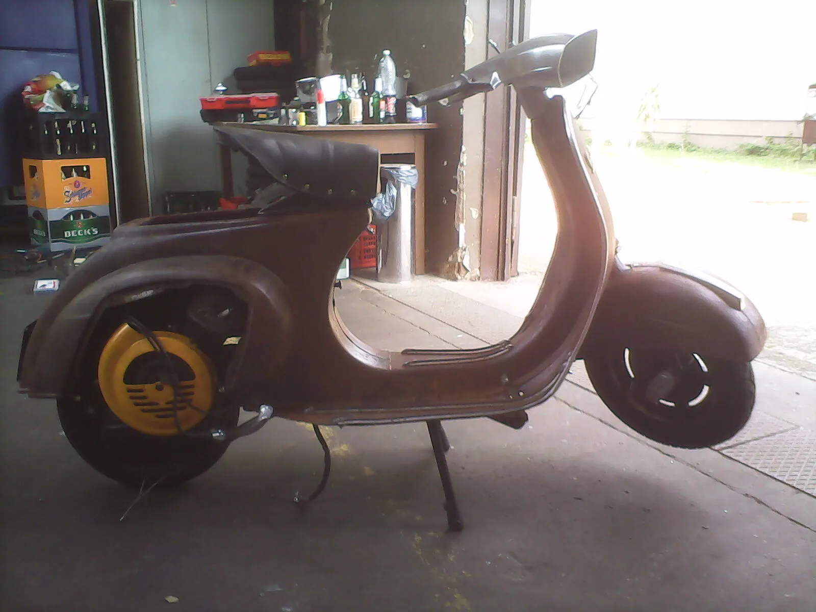 außerdem bin ich endlich dazu gekommen den xl2 motor zu verbauen mit 1zug schaltung. hab mir nen halter für den schaltdraht gebastelt und nen schaltarm für das schaltrohr. weil ich es nicht übers herz gebracht hab das schaltrohr unwiderruflich umzubauen. das letzte bild zeigt den hebel im 4ten gang, bleibt also noch ein bissi luft...könnte sogar nen bearbeiteten ori. tacho verbauen, aber ich wills erstmal mit nem digi fahrradtacho versuchen.