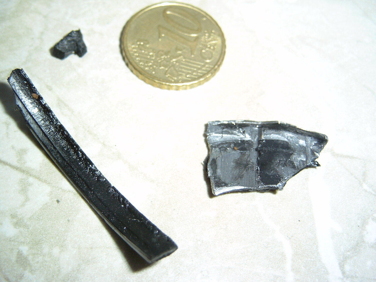 Heute hab ich den Zylinder runtergenommen - der war 1a ohne Reiber oder Klemmer. Aber dann hab ich zur Kurbelwelle runtergeguckt und da die im Anhang ersichtlichen Teile rumfliegen gesehen und rausgepopelt. Was ist das? Teile von nem Simmerring? Von welchem? Die Münze war nicht im Gehäuse, sondern liegt zu Größenvergleichszwecken beim Foto.