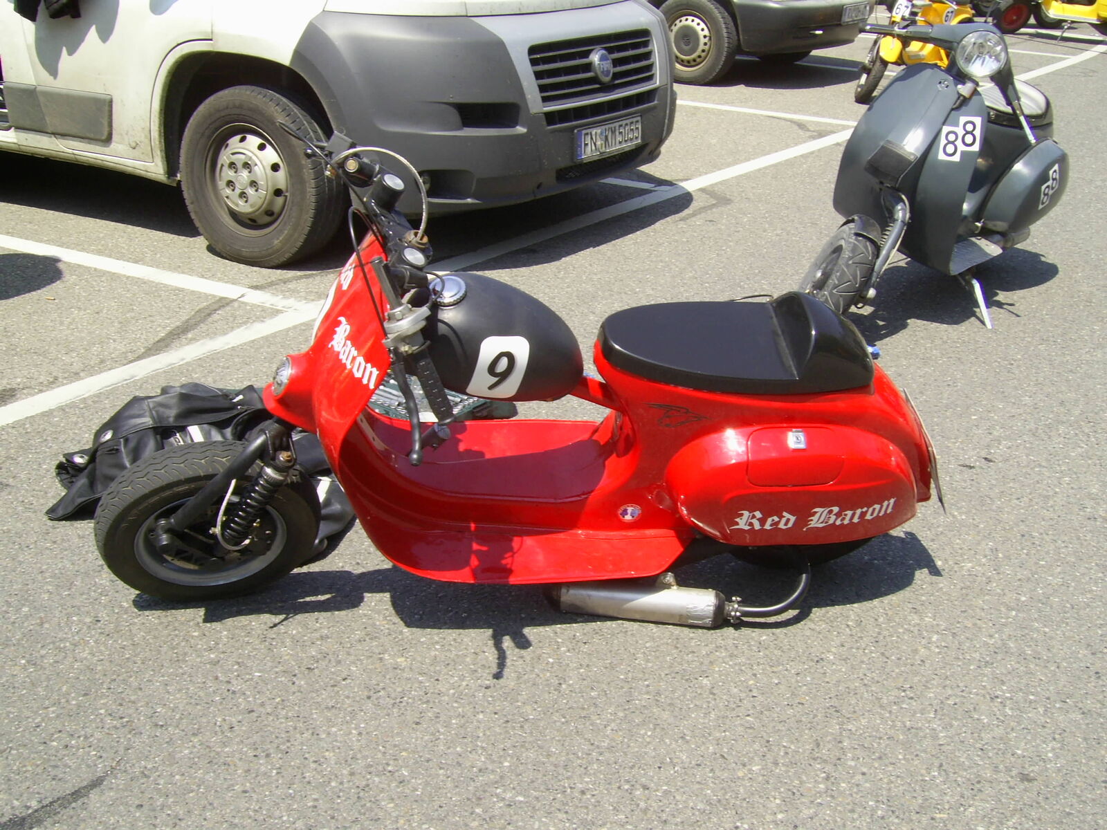 Am Donnerstag hab ich meine Vespa dann endlich abgohlt, dachte ich kann trotz Regten eine kleine Runde fahren. Fahr gerade vom Hof, es waren keine 200 m als von rechts einer mit seinem Auto mir seitlich in die Backe fährt, konnte gerade so ausweichen das nicht mehr passiert ist und ich mich abfangen konnte. Bin dann nach 10 m zum stehen gekommen, dreh mich um und schau nach dem Auto, ist dieses Arschloch doch tatsächlich abgehauen, durch mein nasses Vesier konnte ich das Nummernschild nicht erkennen, war auch zu weit weg, bin noch kurz hinterher aber keine Chance.