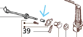 aha, da scheint mir der splint abhanden gekommen zu sein, das drehbare röhrchen, ist das aus plastik, gehört das zum eignetlichen benzinhahn. erreiche ich das drehbare röhrchen über das kleinkramfach unter der sitzbank