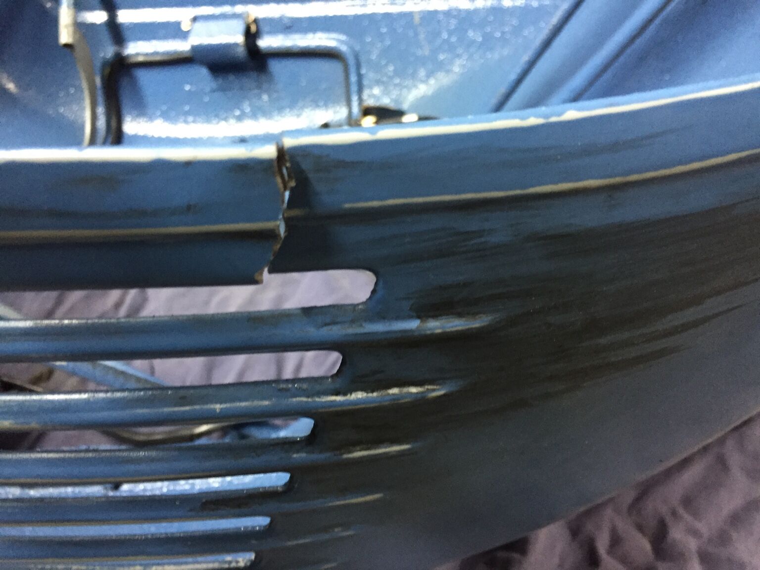 Hingelegt? Nein, das ist die O-Lack-Fake Lackierung zwei Schichten Grau, eine Schicht Blau und dann alles mit 800er Nass geschliffen und an den Kanten sieht es dann so aus, als wenn die Grundierung durchkommt..