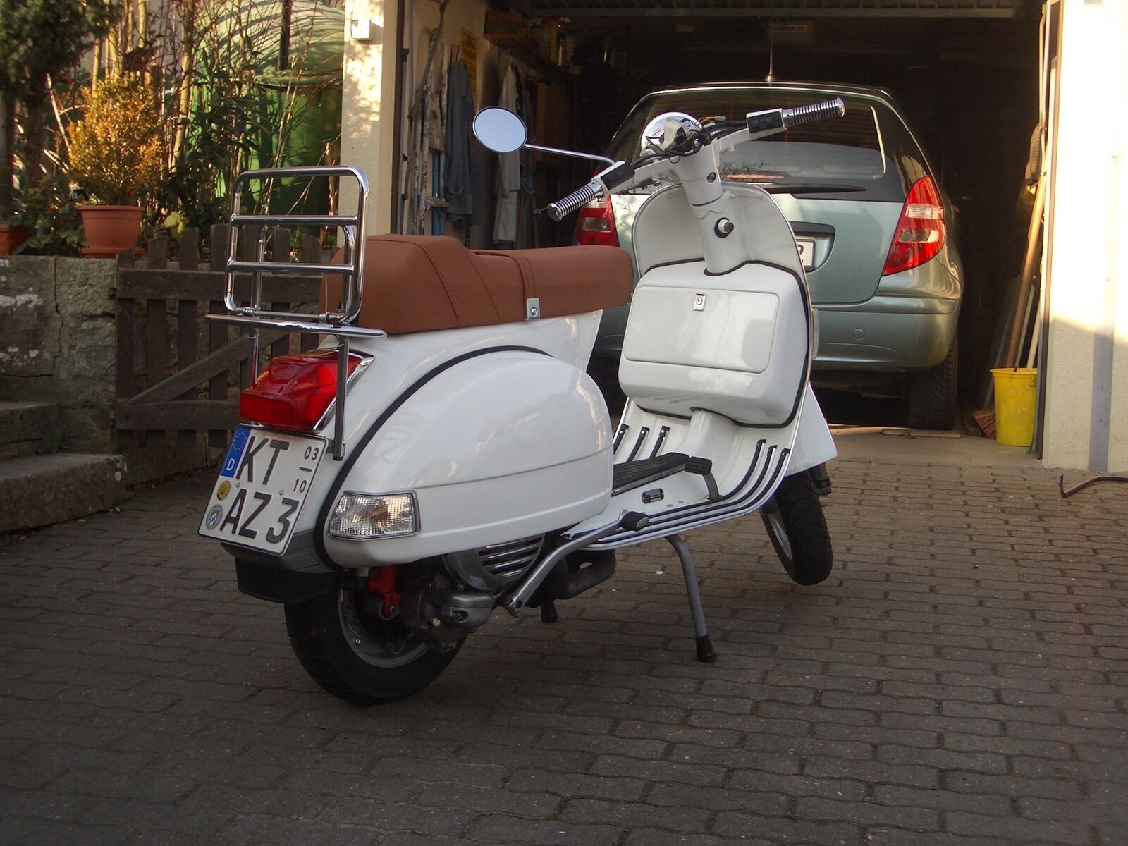 Und die Sitzbank hab ich mir zum einen wegen der Farbe geholt und zum anderen wegen der Form. Fand, dass ne Braune Sitzbank auf ner weißen Vespe besser aussieht als eine schwarze. Glaube aber schon, dass die ziemlich hart ist. Bin mal gespannt auf die erste Ausfahrt im Frühjahr... Aber ist eben alles geschmackssache. -