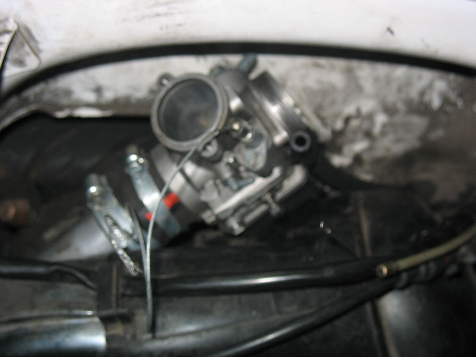Allerdings befürchte ich das wenn das gummi noch etwas gerader draufsitzt der vergaser geneigt werden muss da das sonst nicht mit der vergaserwanne an der Lüfterhaube past.