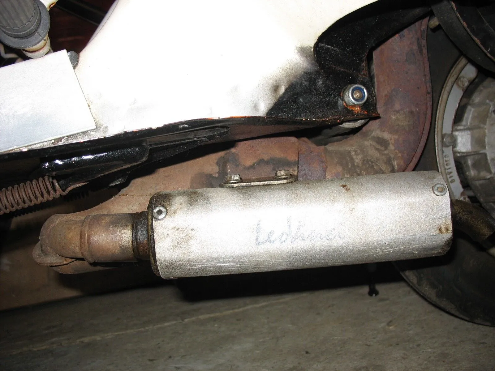 Ich hab hier mal bilder von nem LeoVince auspuff gemacht den ich gerade Probeweise auf nem 75ccm polinie mit nem 16.15 gaser fahre.