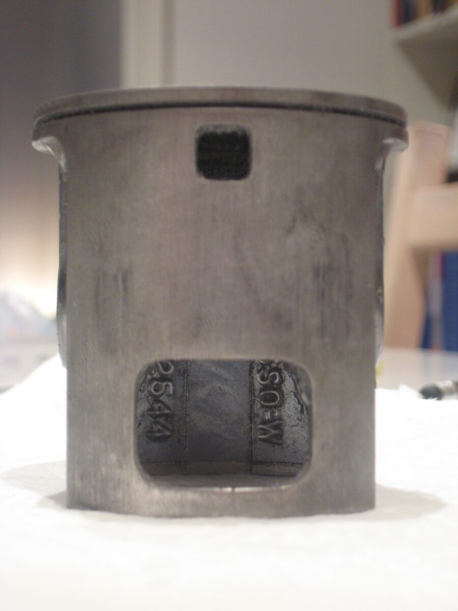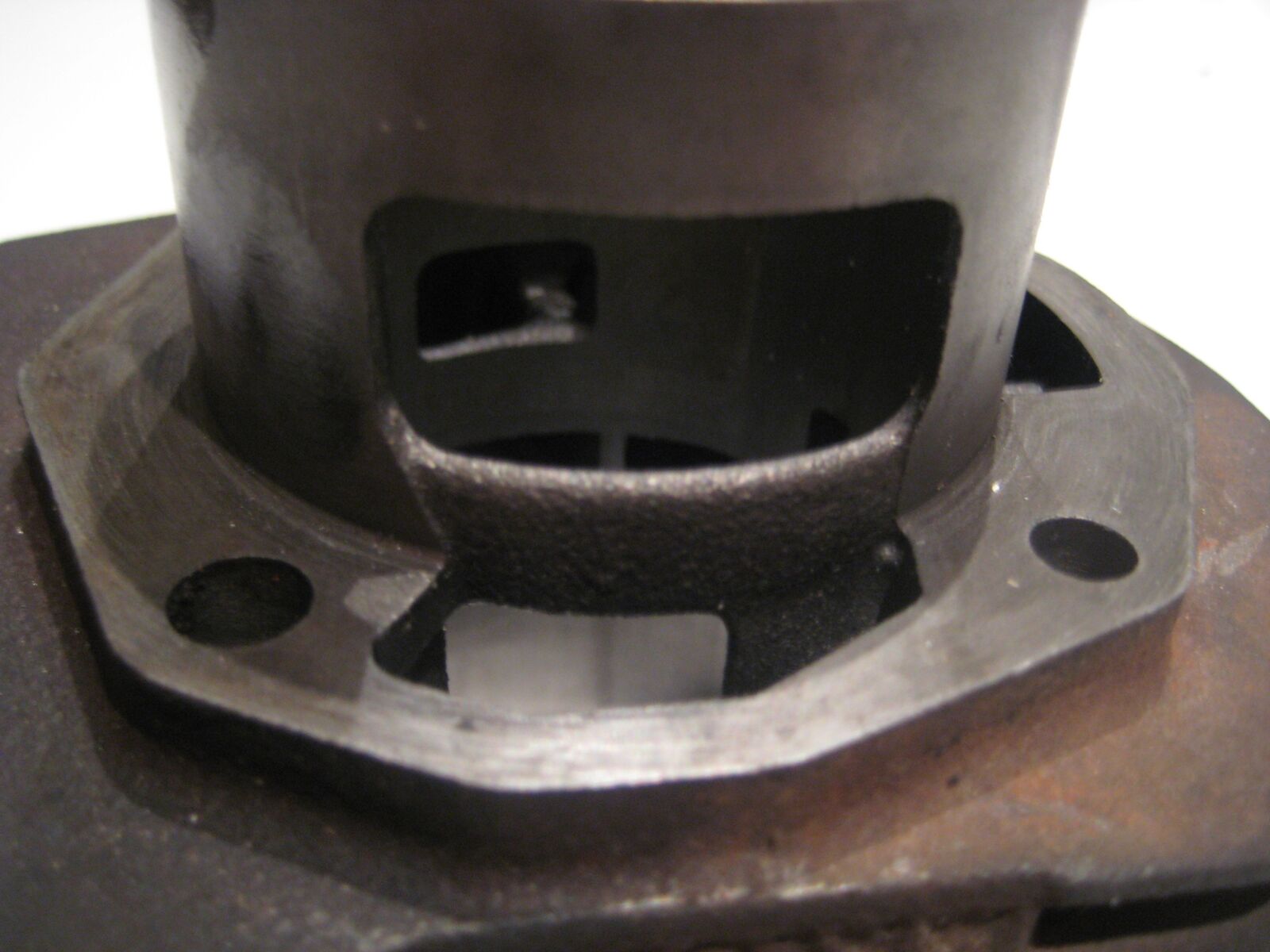 Der Zylinder (ein alter 139er). Was hat es mit dieser schraffierten Fläche auf sich... Soll die etwa weg? Nee, dann kippelt der Kolben, oder? Ich dachte, ich pass den nur ans Gehäuse an...