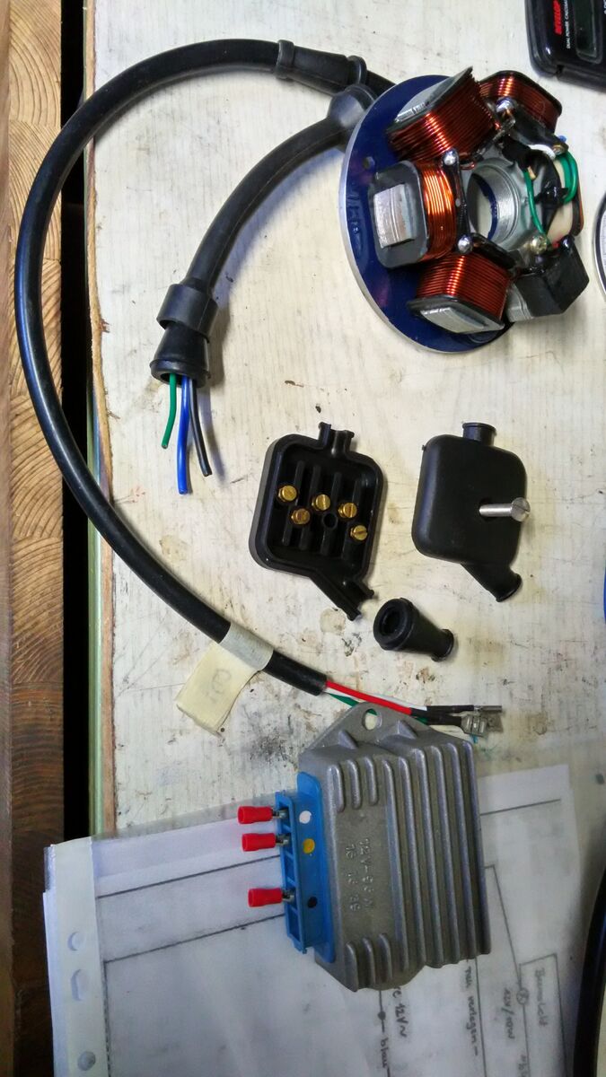 Also, meine V50 soll wegen LED-Umbaus komplett auf Gleichspannung umgestellt werden, bekommt keine Blinker, aber ein Batterie als Puffer für den Vollwellenregler.