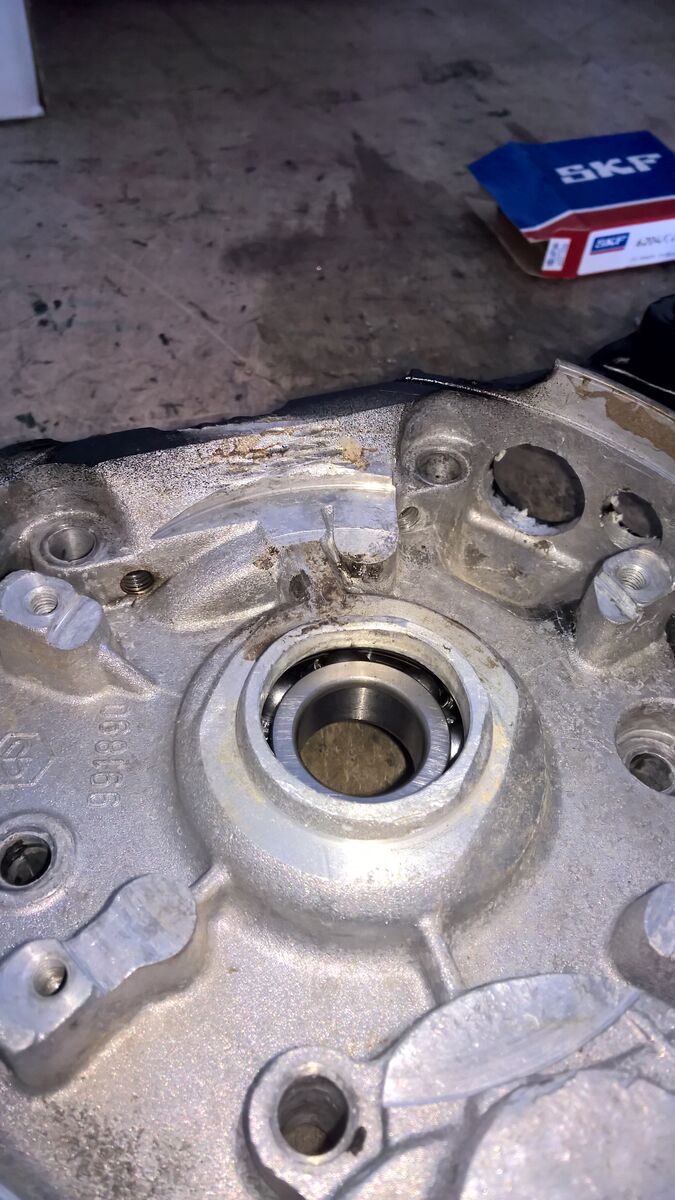 Ich habe heute bei meiner ersten Motor-Revision die neuen Lager eingesetzt. Hat weitestgehend ohne Probleme geklappt, ist ja kein Hexenwerk. Allerdings bin ich mir beim KuWe-Lager auf der Lüfterrad-Seite nicht ganz sicher, ob das korrekt montiert ist. Denn irgendwie sieht es so aus, als hätte ich das Lager nicht tief genug in das Loch geschoben. Weiter ging es aber nicht. Von der KuWe-Seite aus betrachtet liegt es jetzt plan auf, von der LüRa-Seite aus wirkt es aber so, als wäre da noch ein kleiner Spalt.