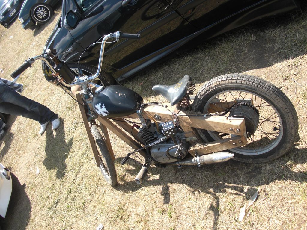 Auch das Triebwerk einer PX200 passt in den Rahmen. Die Schwingen sind aber unterschiedlich, musst also am Rahmen Buchsen setzten oder eine Traverse einbauen, damit Du mit der Schwingenaufnahme im Rahmen weiter nach hinten kommst. Der Rahmen muss unter der rechten Seitenbacke etwas geschnitten werden, damit Platz für den Vergaser ist.
