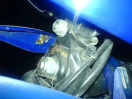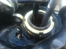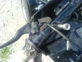 Der Kupplungszug wird (zumindest so wie ich das auf div. Fotos sehe) von oben an der Durchführung an der Lenkerplatte von einem Plättchen gehalten (ich gehe davon aus, dass dies das abrutschen des Zugs nach unten beim runterschalten verhindert).