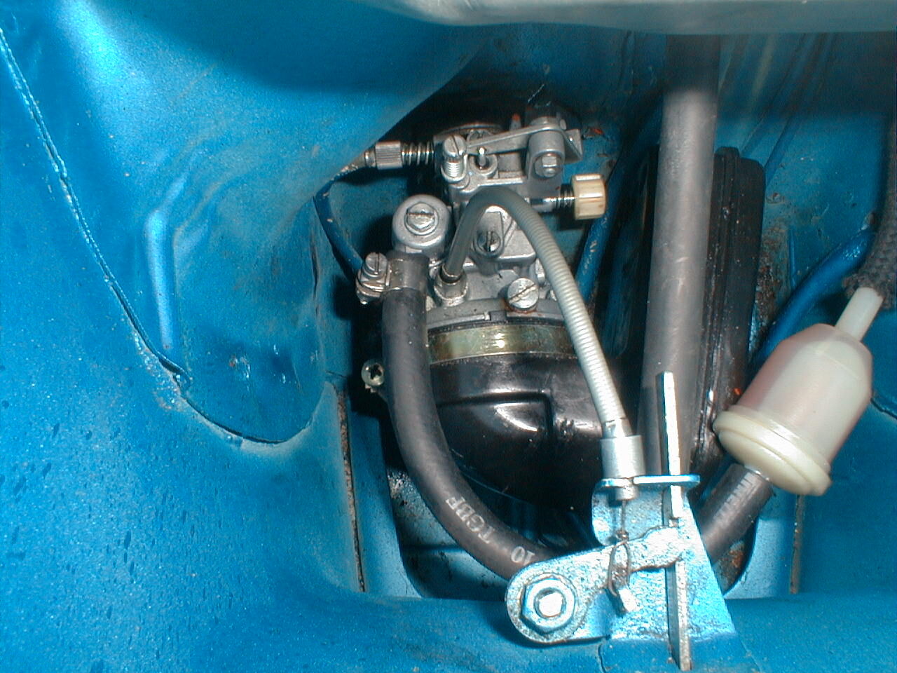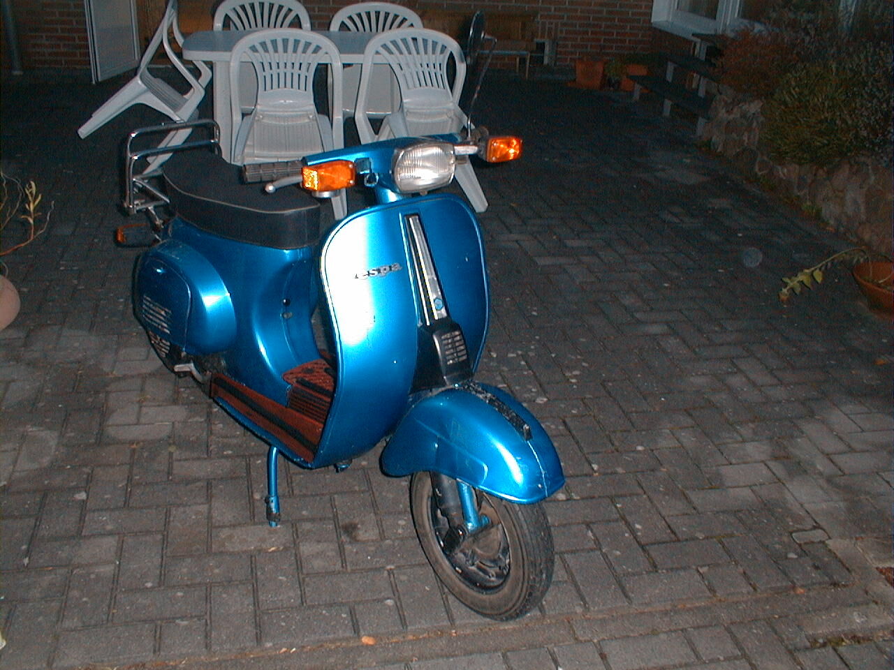 Nun ja, ich habe ja gesagt, das ich heute schon 3 Stunden unter und über ihr gelegen habe, nun springt sie an, sie läuft zwar noch nicht gut, ich glaube aber das ist eine Einstellungssache. Was mich nervt ist das Bremspedal, das klemmt irgendwie, ist nicht gängig, es liegt aber am Pedal, nicht an der Trommelbremse, die ist gängig. Ich habe mal nen bisschen WD40 dran gegeben, Julia musste nämlich 6 Jahre im Stall stehen... weiss nicht ob sie böse war. Das Bremspedal habe ich losgeschraubt, mit WD 40 behandelt habe mich aber wegen des Zuges nicht getraut es herauszunehmen, ich wollte da erst mal die Meinung im Forum abwarten was da zu tun ist. Den Vergaser habe ich komplett rausgehabt und ihn mal gesäubert, ich glaube in der Schwimmerkammer war etwas verstopft, deshalb sprang sie erst nicht an. Natürlich habe ich wie wild an den Schrauben gedreht (vor dem säubern), in der Hoffnung ein göttliches Geschick lenkt meine Hand und sie springt n, dem war nicht so. Es ist nun also alles verstellt... Problematisch war die Rückleuchte, da ist die Schraube, die am Reflektor die ganze Lampe am Kotflügel hält raus gebrochen gewesen. Das habe ich provisorisch geflickt, werde aber eine neue besorgen müssen... (Hat wer eine... kostet?) Einen neuen Vorderreifen habe ich schon bestellt, der alte hatte Risse, Bremse vorne geht, Licht und Blinker auch, nachdem ich die Leitungen vom Rost befreit hatte.
