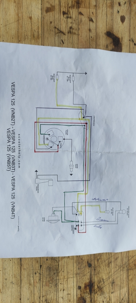 Habe es nach beiliegenden Plan verdrahtet. Da die alte Lichtmaschine sich aufgelöst hatte habe ich von SIP .. eine neue 6Volt Lichtmaschine verbaut.