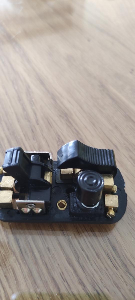 Auf dem "Multischalter" sind zwei Schalter und eine Hupe und am Deckel der Kurzschliesser.