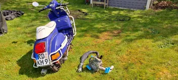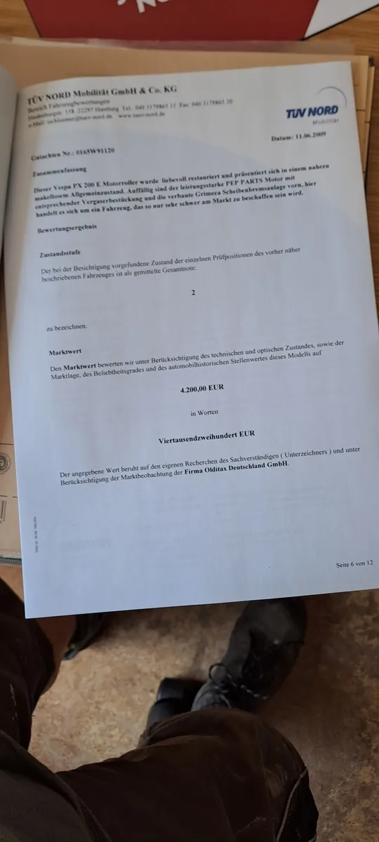 Die im Hintergrund zu sehene rote Px, wird auch verkauft. Aber die soll erst noch mal chic gemacht werden. Die anderen Vespaklamotten, wie JL, Drehzalmesser, zig Lager, Züge, original Kurbelwelle und und und kommen die Tage rein.