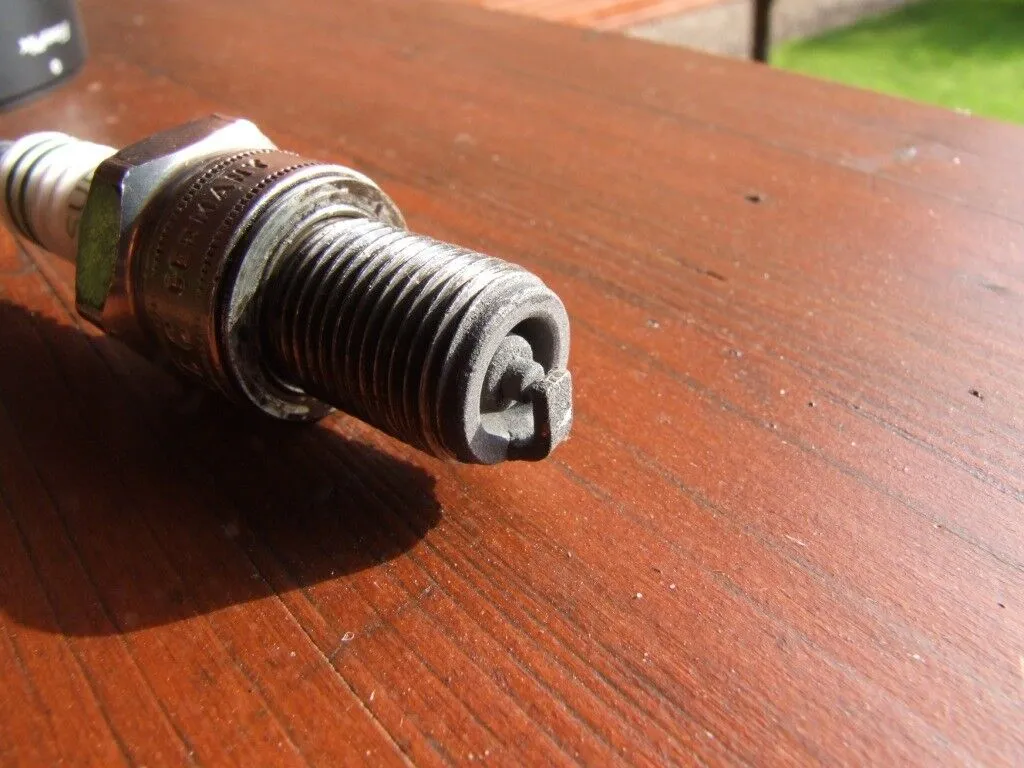 Ein nettes kreisrundes Loch. Und jetzt mal eine Zündkerze mit Alubeschichtung: