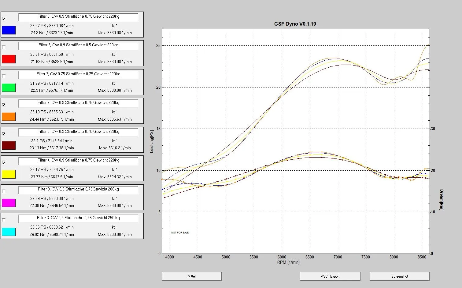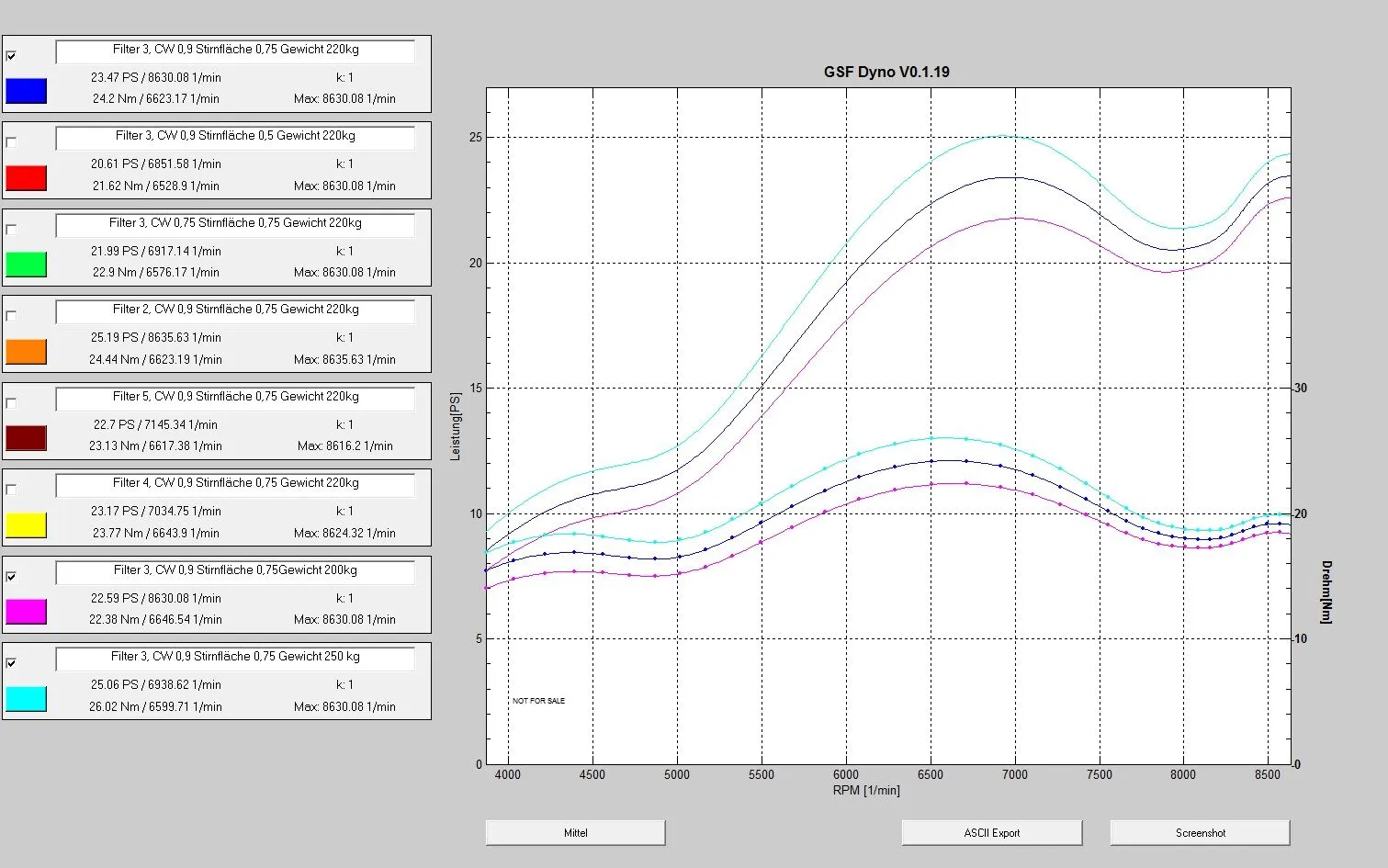Änderungen von +- 25 kg machen da schnell Unterschiede von 1-2 PS am gesamten Band.