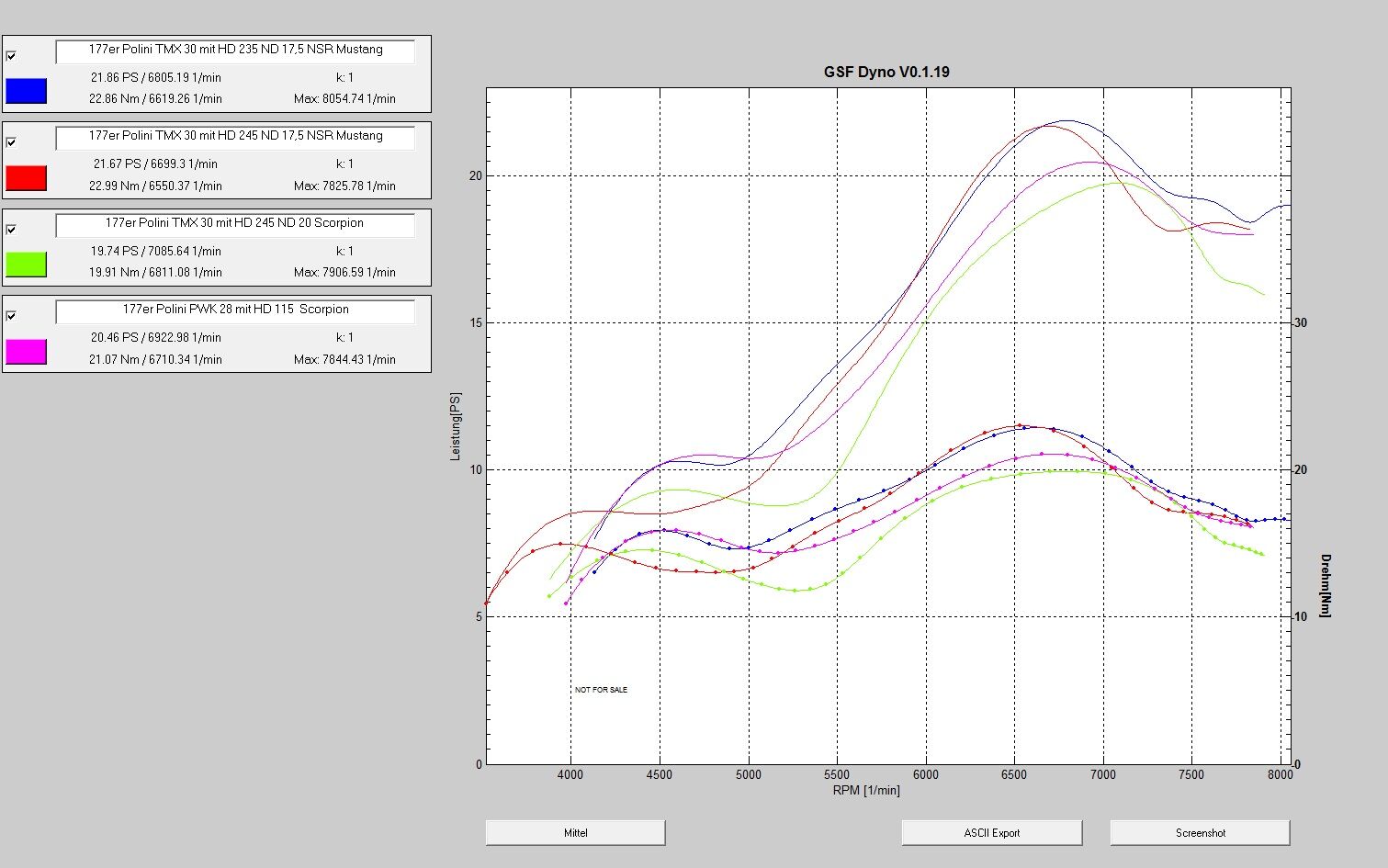 Der Vergleich vom Scorpion mit TMX und PWK zeigte ja dass der PWK besser eingestellt war. Nun schau ich mal wie weit ich mich traue den TMX runter zu setzen und dann wird der PWK nochmal getestet.