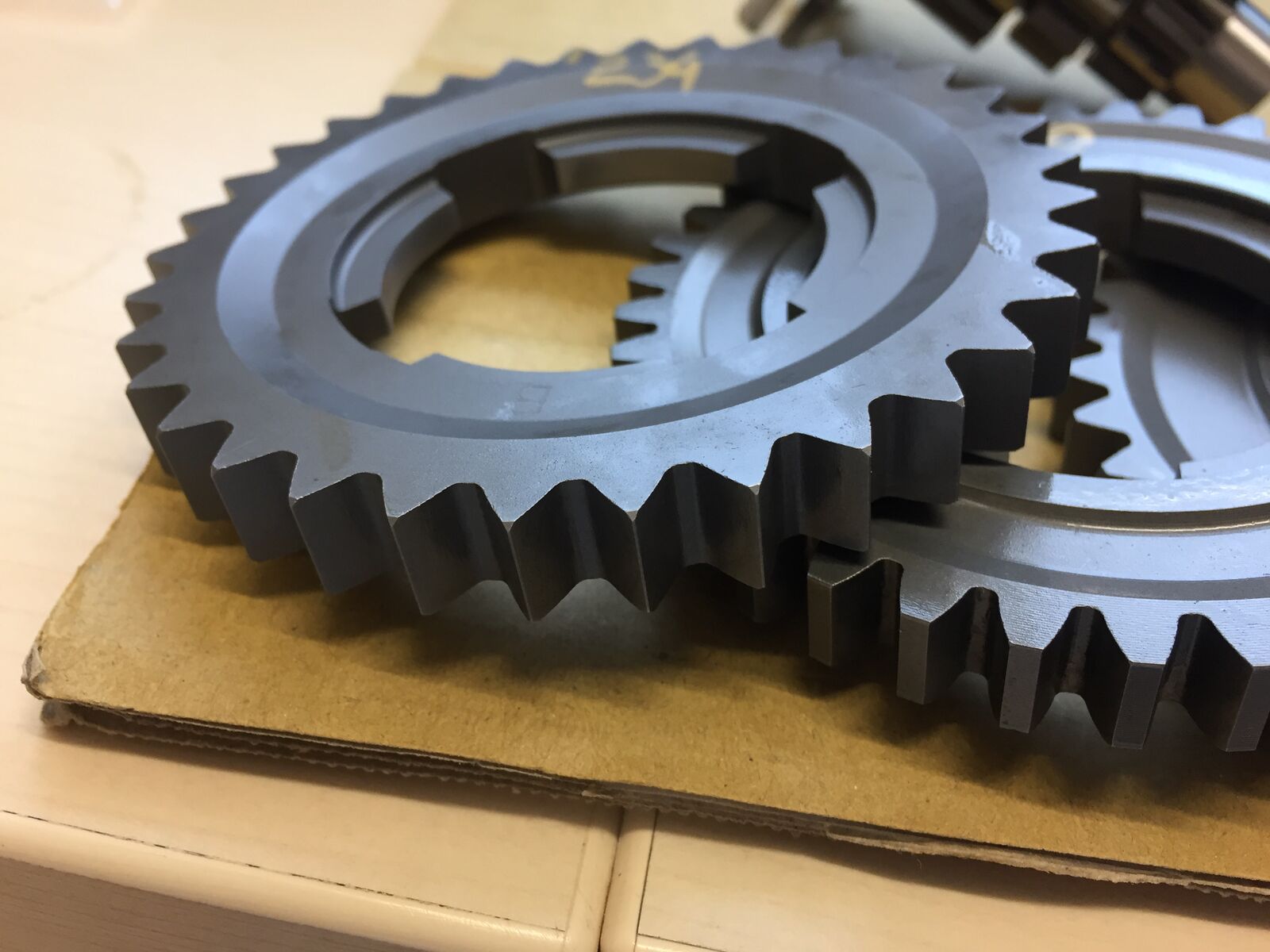 es geht einfach um die paarungen. die zahngeometrie ergibt sich aus dem kreisumfang des zahnrades und der anzahl der zähne und hat keine bewandtnis im speziellen. das getriebe ist aus irgendeinem weltraumstahl und haltbarer als diese piaggiogussdrecksscheiße, die bei 37 Nm schon in die knie geht.