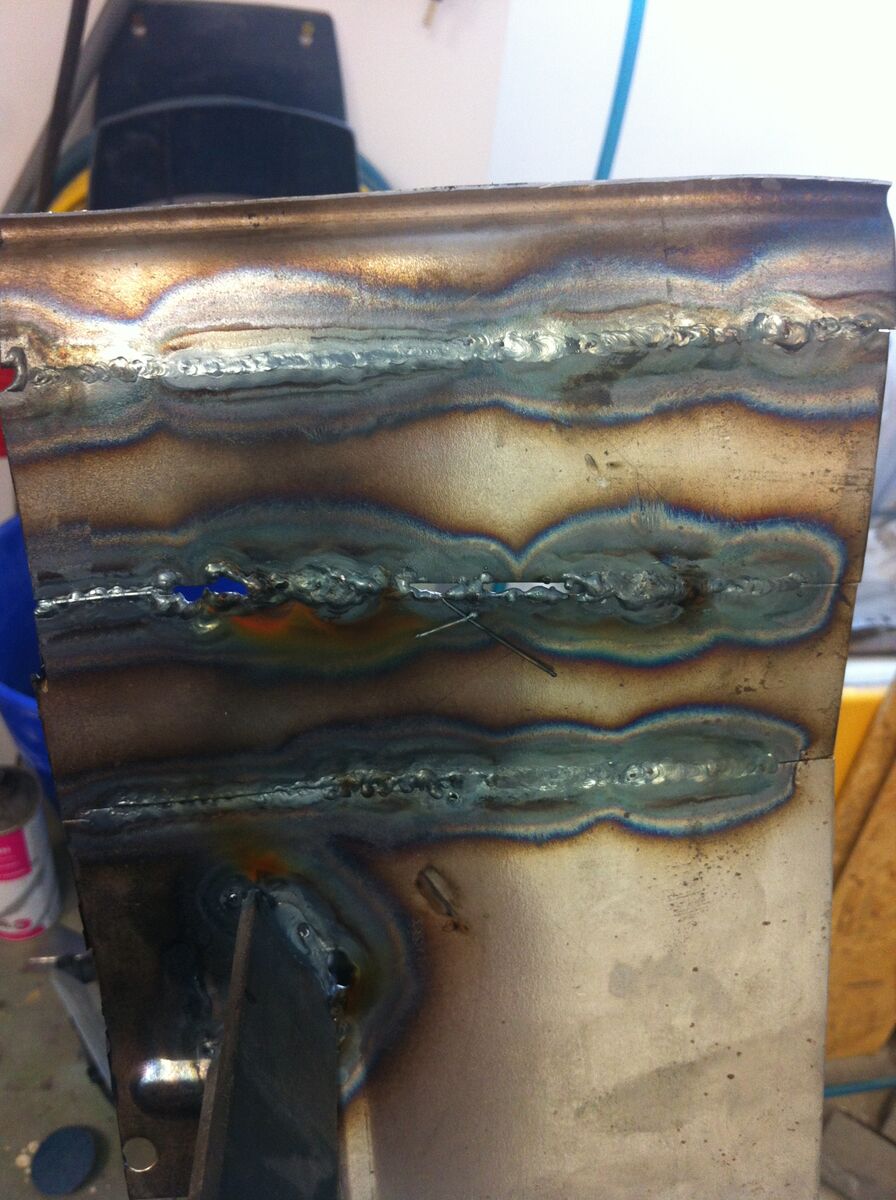 unten erster versuch, oben 2. versuch. mitte erster versuch mit blechen auf 1mm abstand mit 0,8er zulage aus dem schutzgas gerät. ist etwas dünn ;D