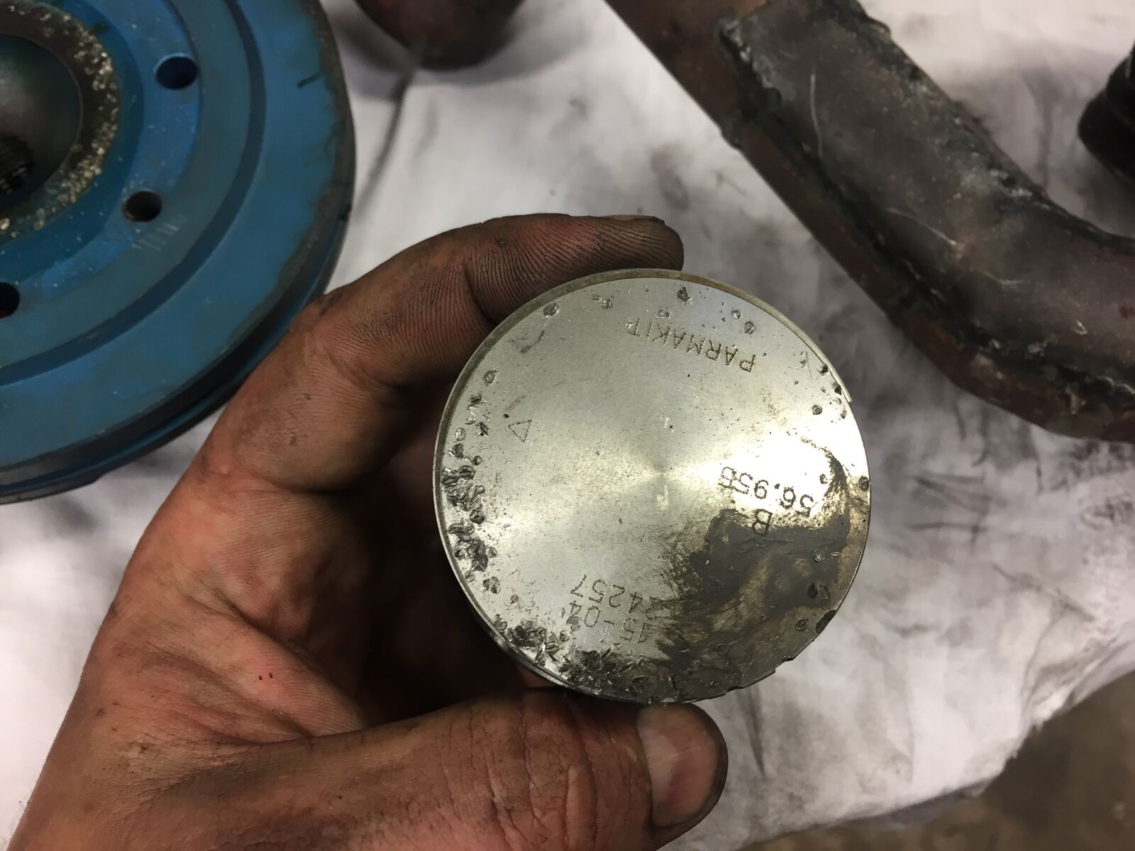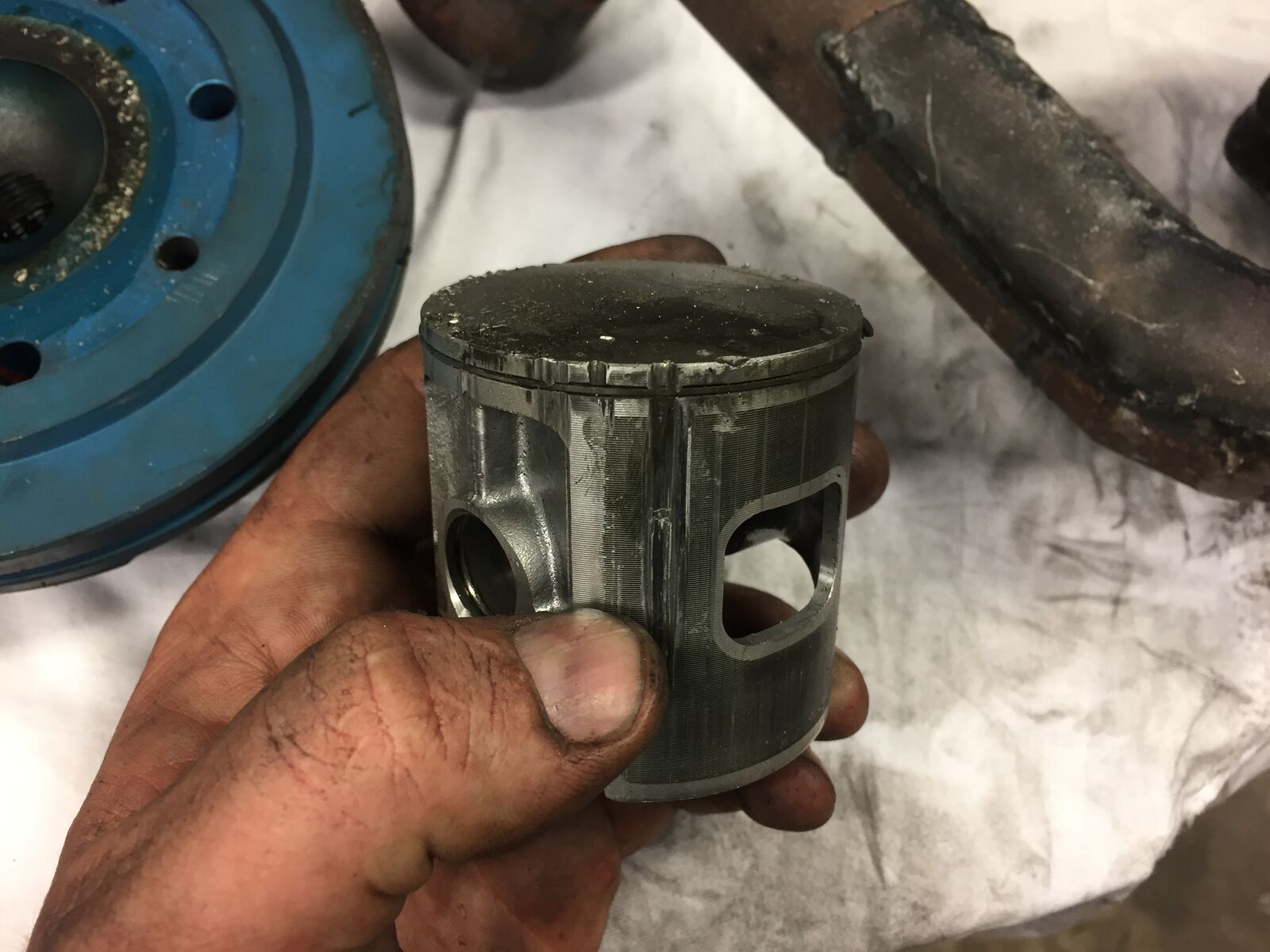 Der Kolben, der verbaut ist, ist ein Wiseco Kolben, den ich in meinem 57er K1 Falc habe. Das war ein alter als "Notfallersatz". Kolbenring ziemlich ausgelutscht und insgesamt ziemlich abgeggabbelt. Egal hat funktioniert. Dummerweise sit die Kompressionshöhe 1mm weniger als beim Parmakitkolben, das führt dazu, dass ich den Zylinder theoretisch einfach nur höher gelegt hätte. Quetschkante von 2mm und assozial erhöhte Steuerzeiten. Vom Spritverbrauch hatte das ding bestimmt 35 PS ![]()