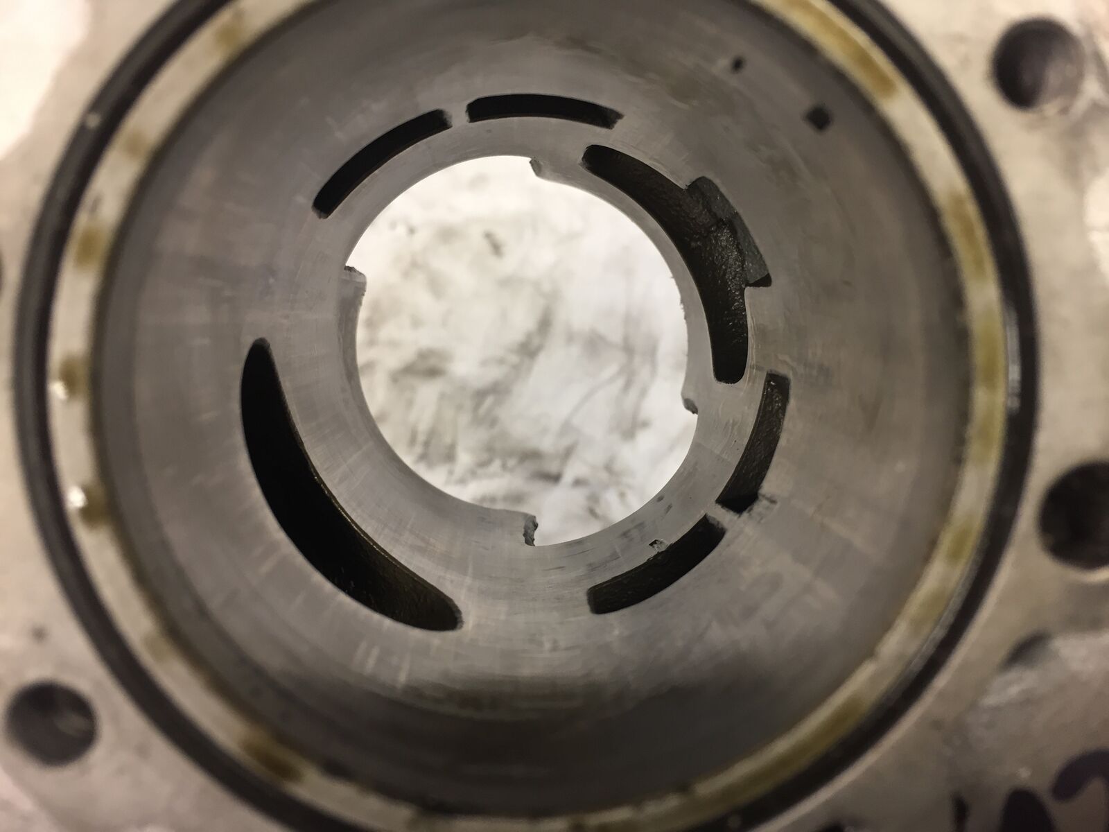 Die Schäden an der Laufbahn halten sich zum Glück in Grenzen. Da nur der eine Überströmer wirklich betroffen ist, und der Beschichtungsschaden unterhalb der Oberkante des Auslasses ist, ist es voll egal. Kommt n neuer Kolben rein und Attacke-Hü!