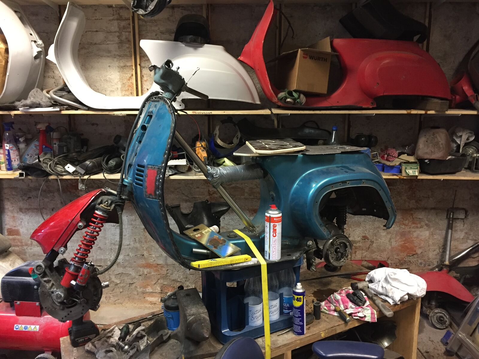Bin nur Montag, Dienstag und Mittwoch in Würzburg, dann schon auf dem Weg nach Frankreich. Die Chance, dass du überlebst ist recht hoch. Wenn du Lust hast auf ein Bier, meld dich mal am Mobiltelefon (Nummer müsste ich dir mal gegeben haben), dann kommst du in mein Werkstattrudiment. Und versprochen: Die Roller sind so ALLE original vom Band gelaufen.