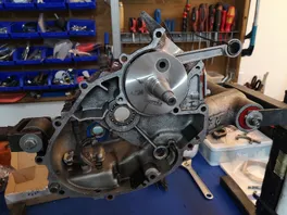 Am neuen Gehäuse musste ich dann noch einen Helicoil für die Ölablassschraube setzen, weil der Vorgänger da irgendein falsches Gewinde reingeschnitten hatte.