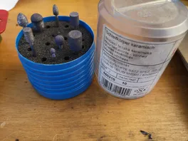 Meist mit den Hartmetallfräsern von Garant um viel "Meter" zu machen. An den Feinschliff geht es dann mit den Schleifrollen im Bild. je nachdem welche Form und Größe