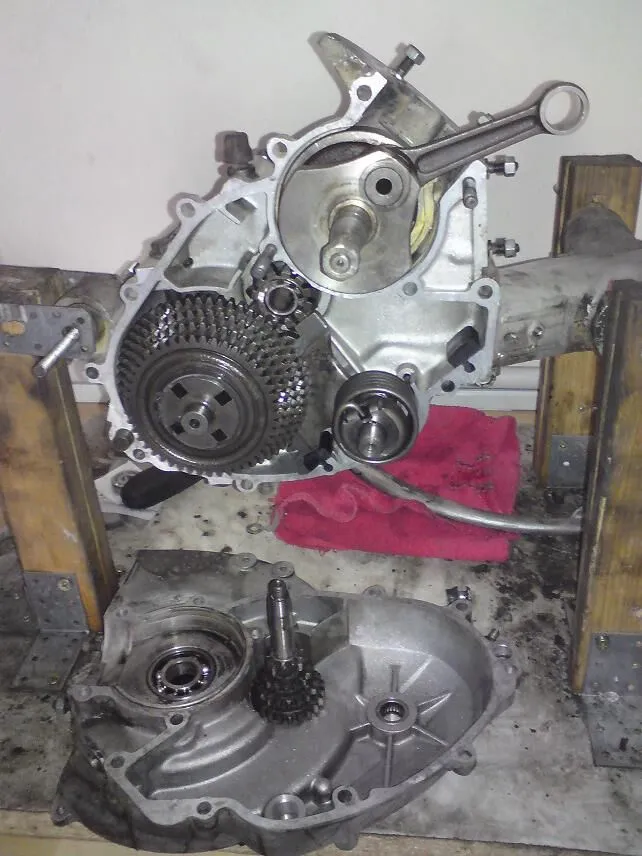 Zumindest ist schon fast der Motor wieder fertig zusammengesetzt. Die Kupplung muss noch rein. Sollte ich die Kupplungsbeläge erneuern, weiß nämlich nicht wie alt die schon sind, auf jeden Fall aber schon 10 Jahre. Besser wärs oder?.