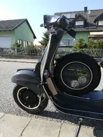Ist ne Dema 450 Hebebühne und dazu noch nen kleinen Heber um die Vespa selbst auch noch auf der Bühne zu heben. Z.b. für Reifen abbauen oder dergleichen.