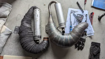 Auslassdichtung bei beiden zerfetzt inkl. lockere Auslasschrauben. Denken dass erst die Schrauben locker wurden und dadurch die Dichtung das flog.
